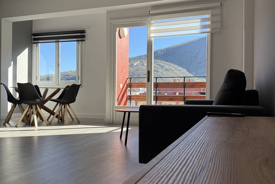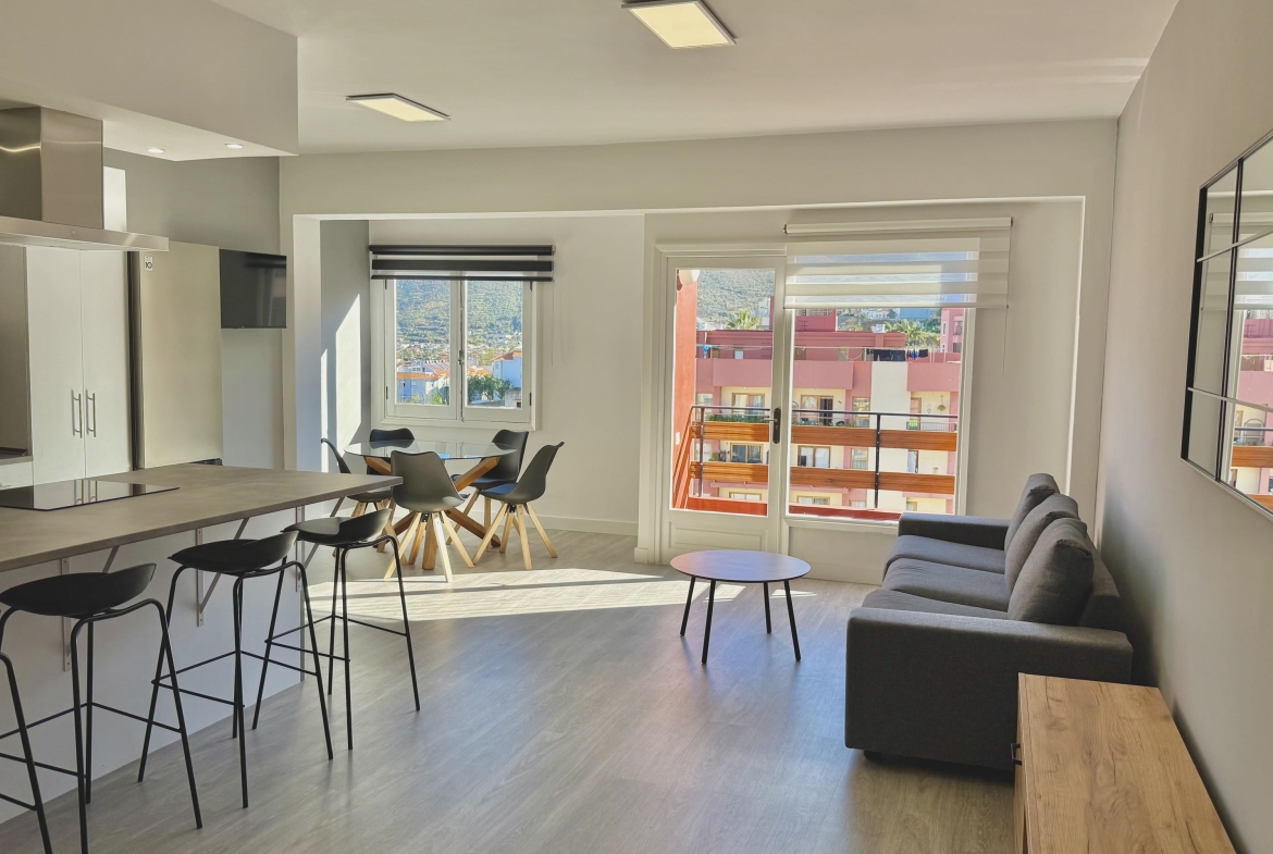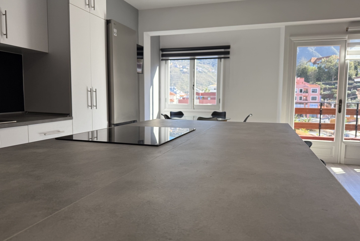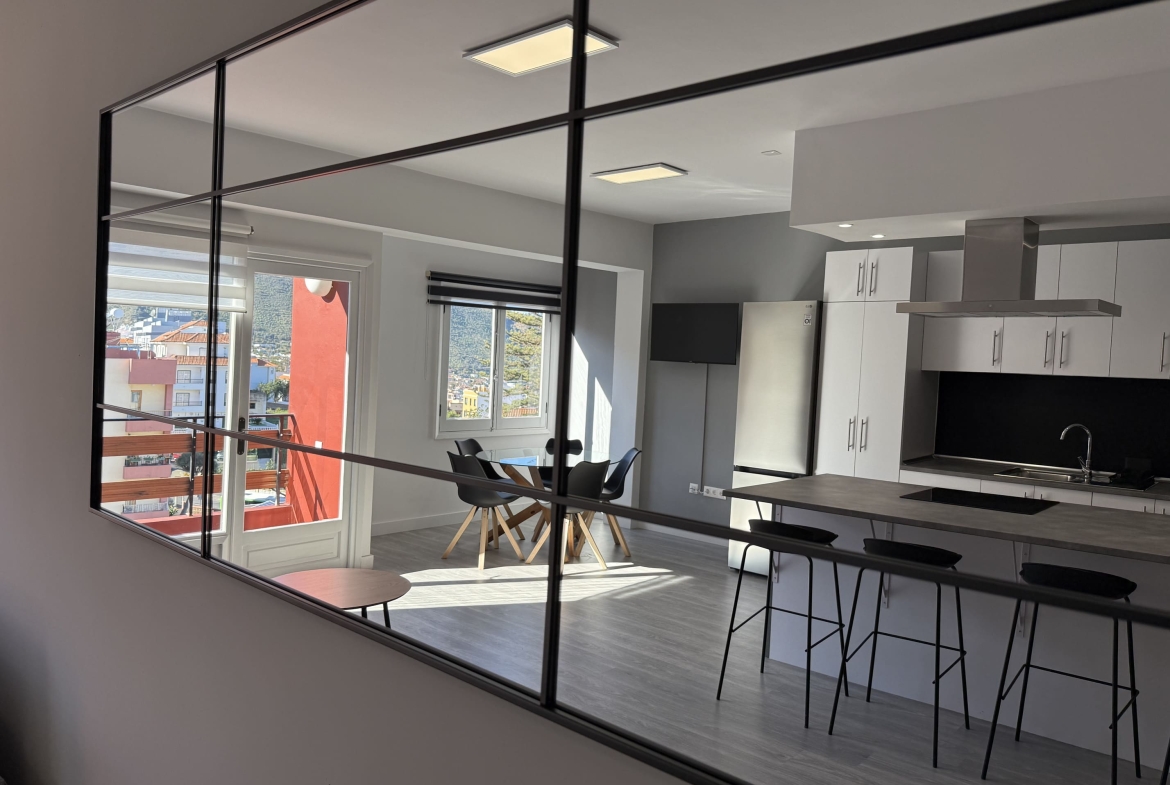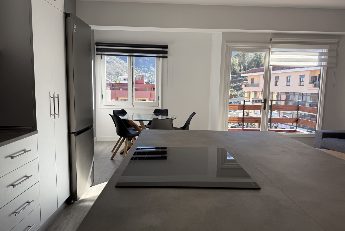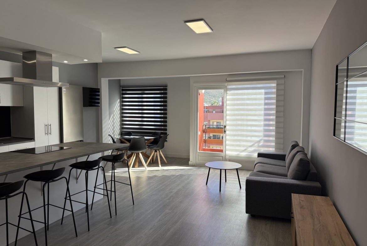 La vivienda dispone de una amplia cocina americana integrada en un espacioso salón-comedor. Además, cuenta con una terraza con vistas panorámicas de 180° al mar y al Teide, ofreciendo un entorno único que combina naturaleza y paisaje urbano.