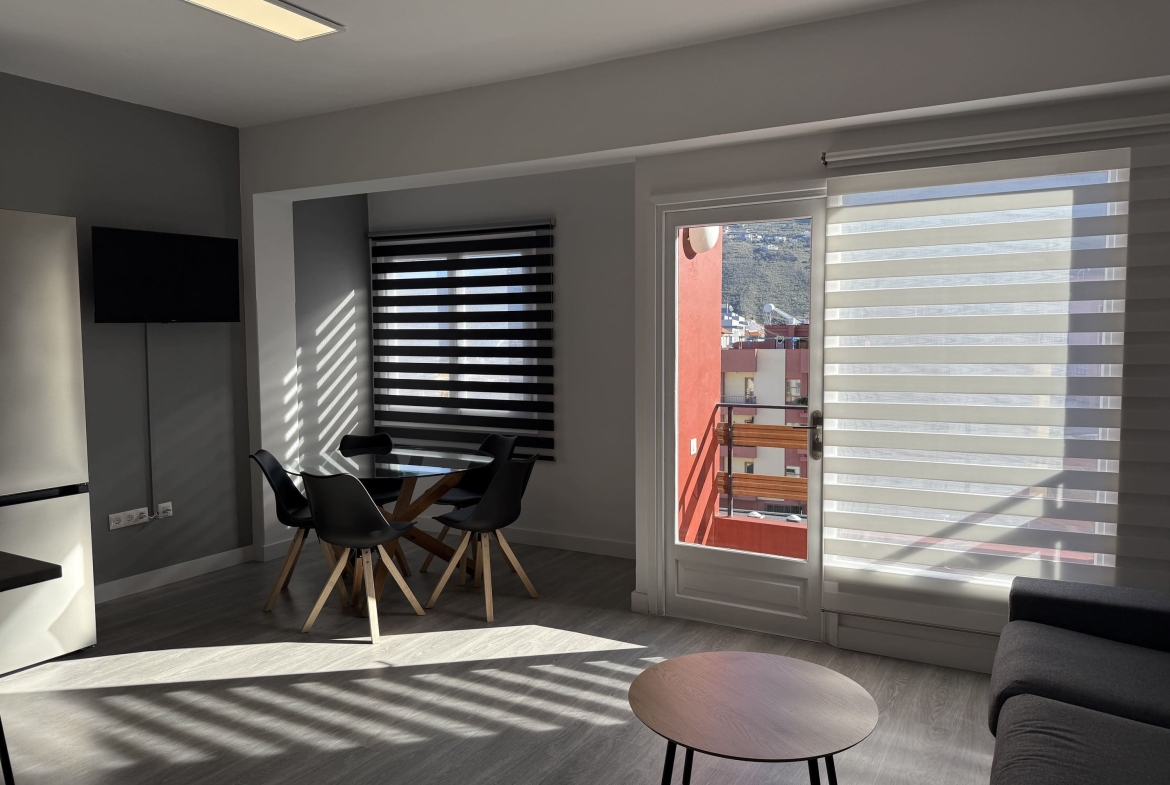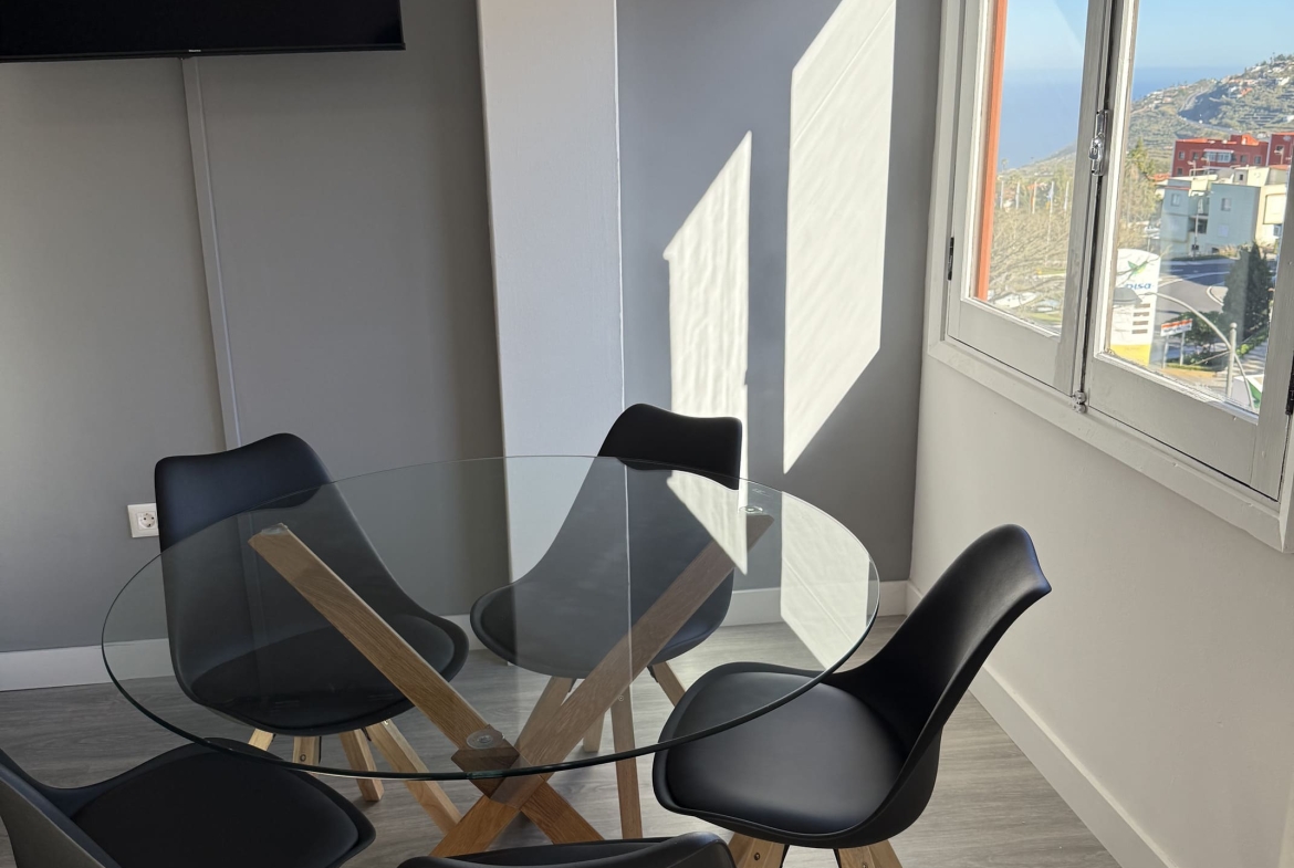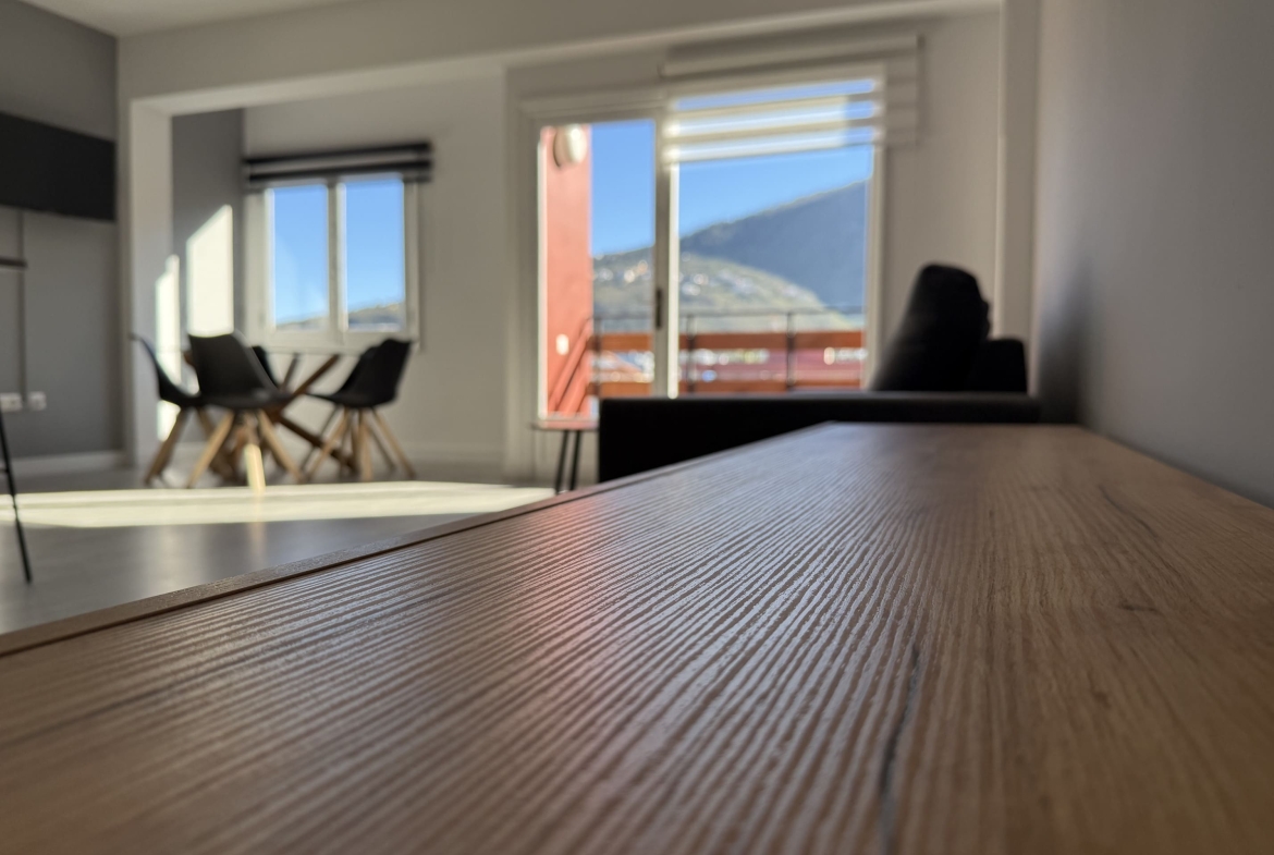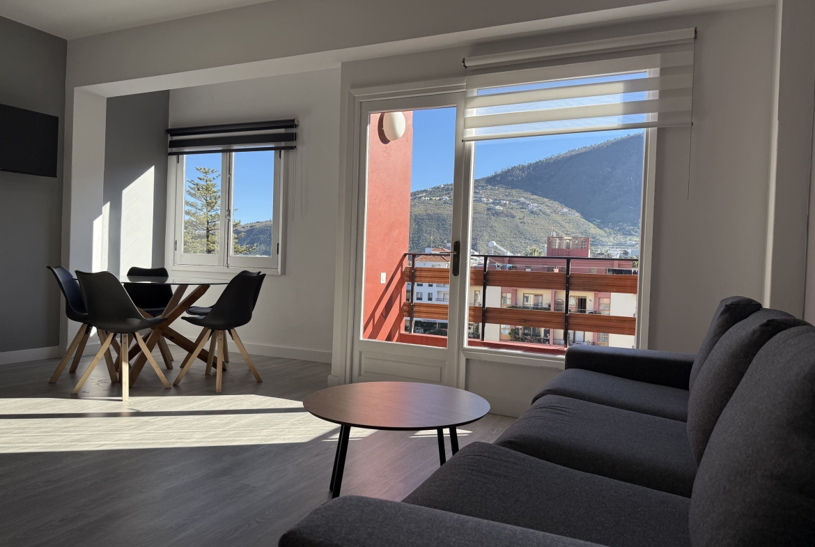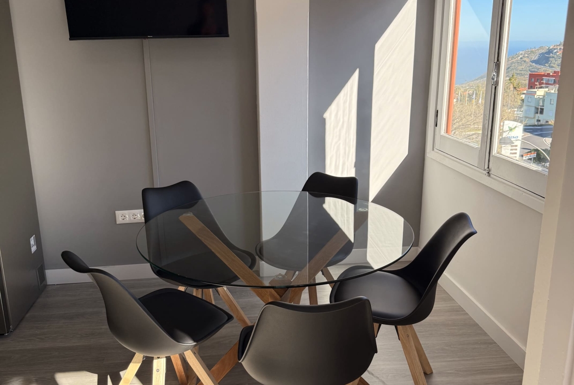 La vivienda dispone de una amplia cocina americana integrada en un espacioso salón-comedor. Además, cuenta con una terraza con vistas panorámicas de 180° al mar y al Teide, ofreciendo un entorno único que combina naturaleza y paisaje urbano.