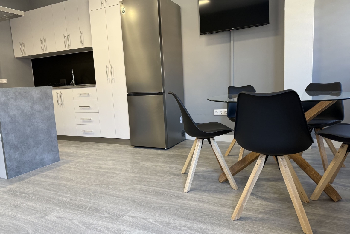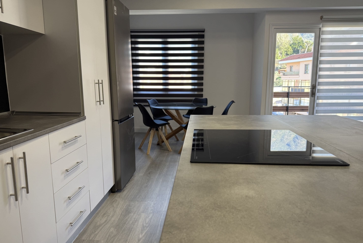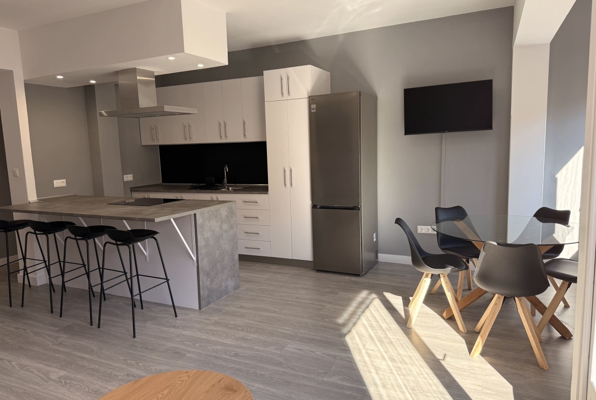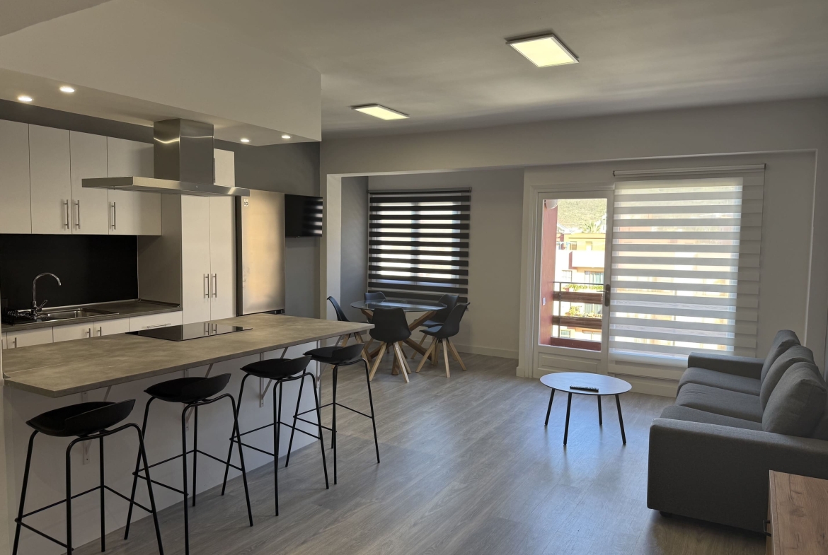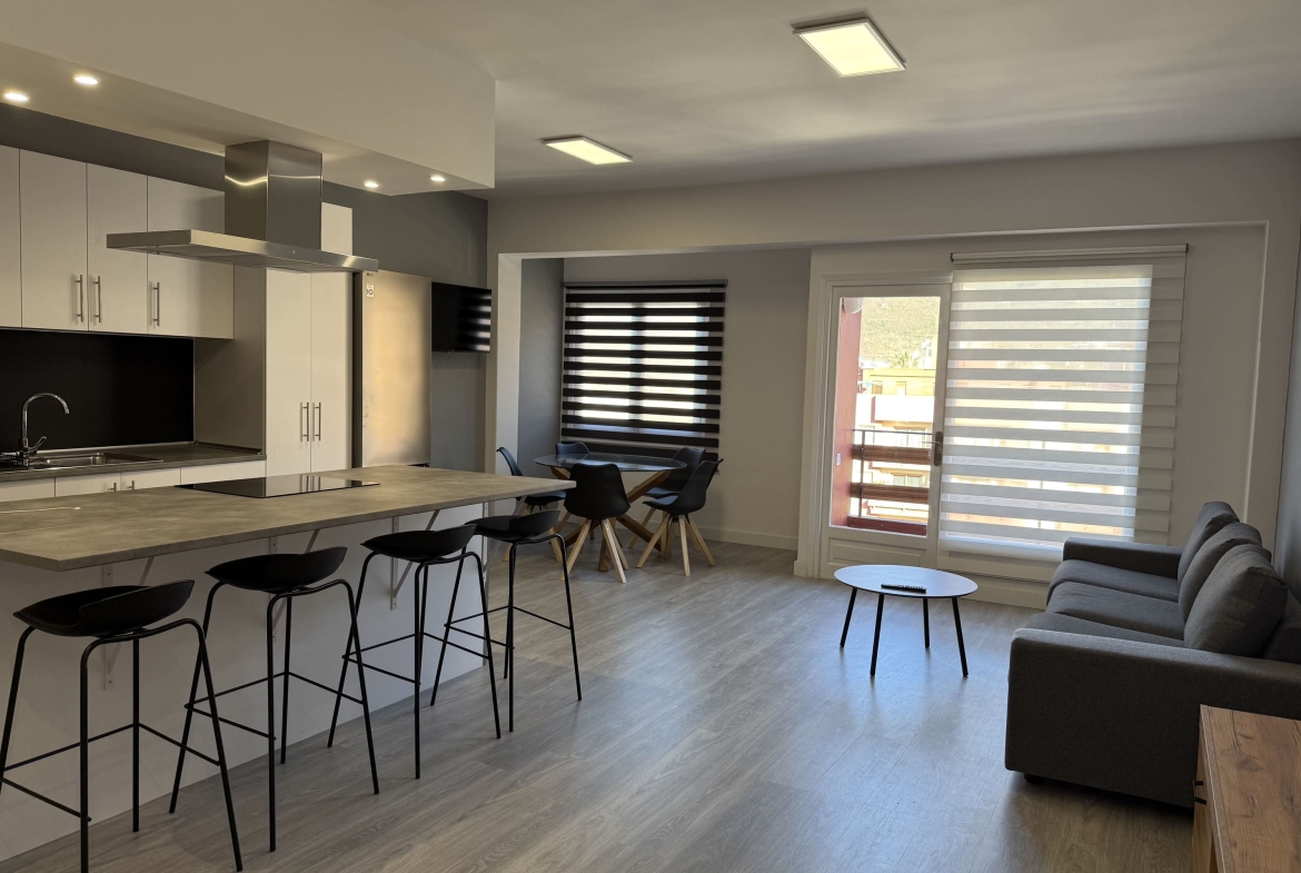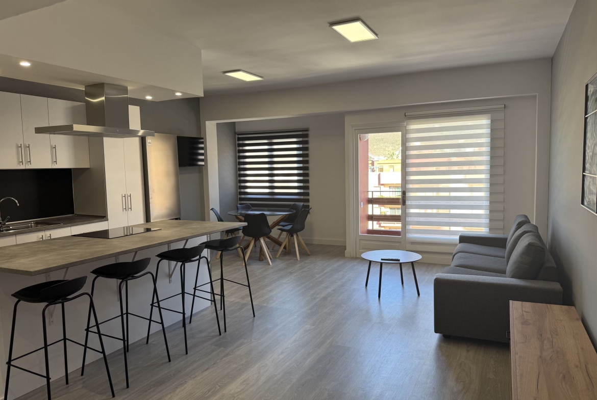 La vivienda dispone de una amplia cocina americana integrada en un espacioso salón-comedor. Además, cuenta con una terraza con vistas panorámicas de 180° al mar y al Teide, ofreciendo un entorno único que combina naturaleza y paisaje urbano.