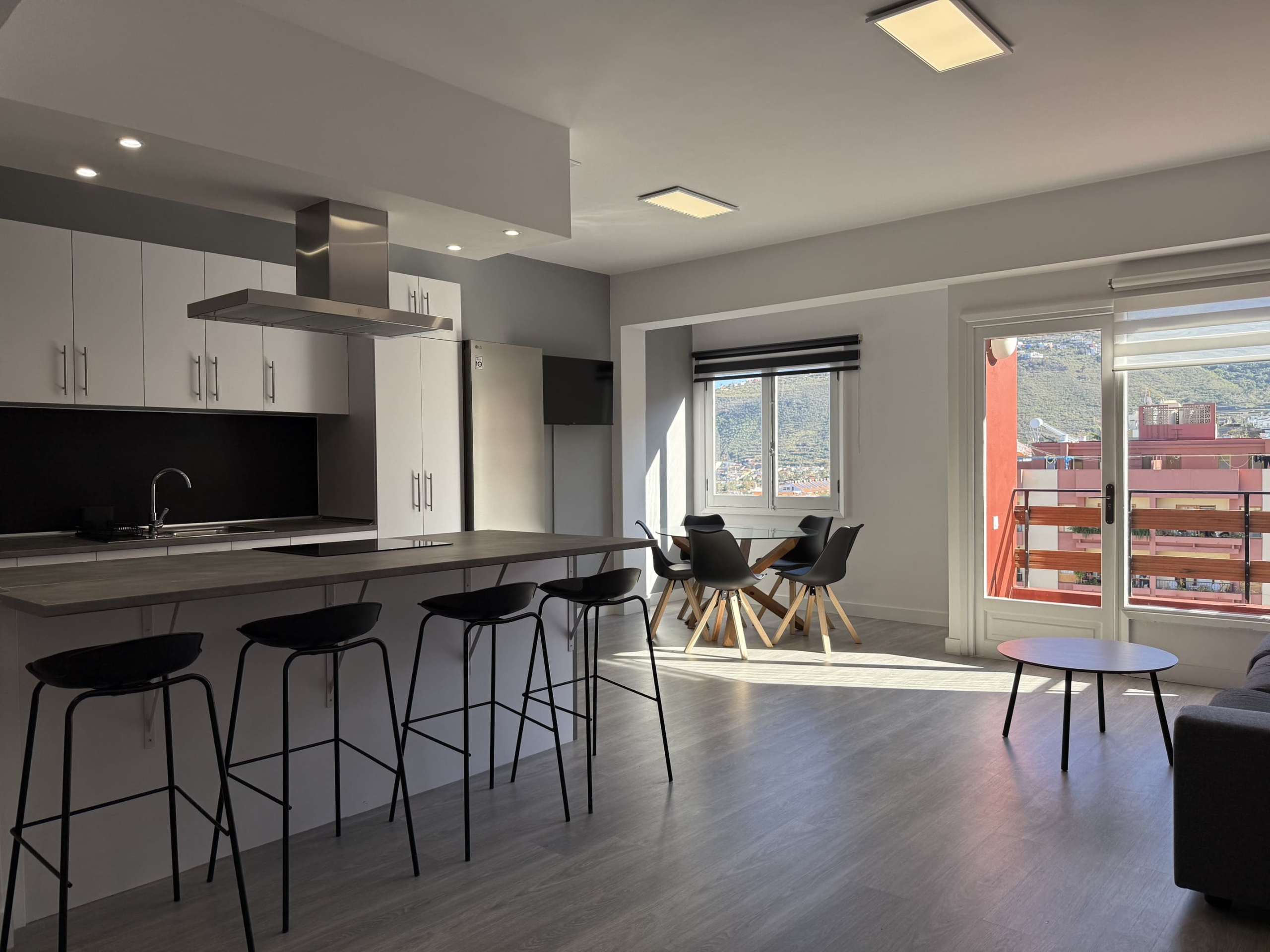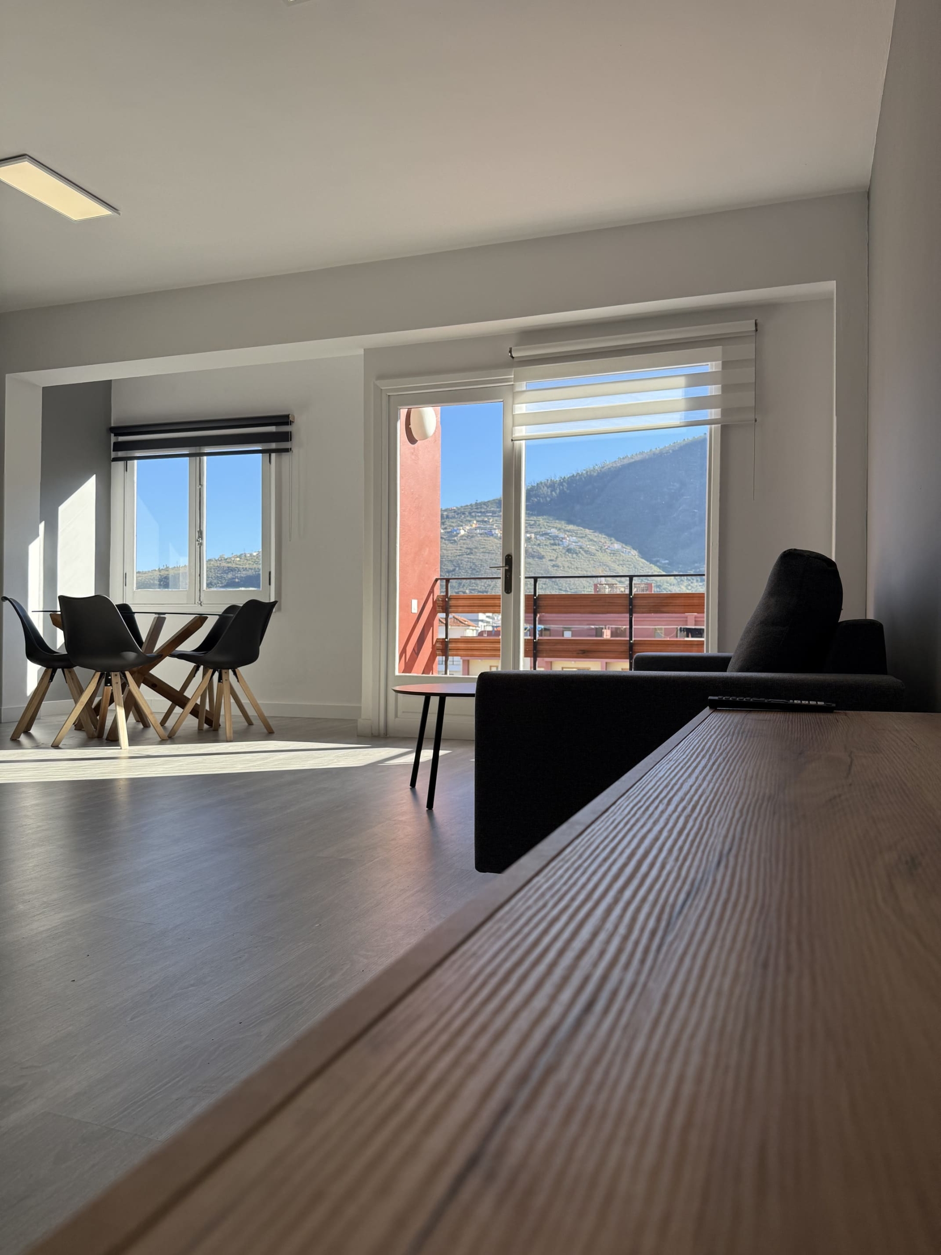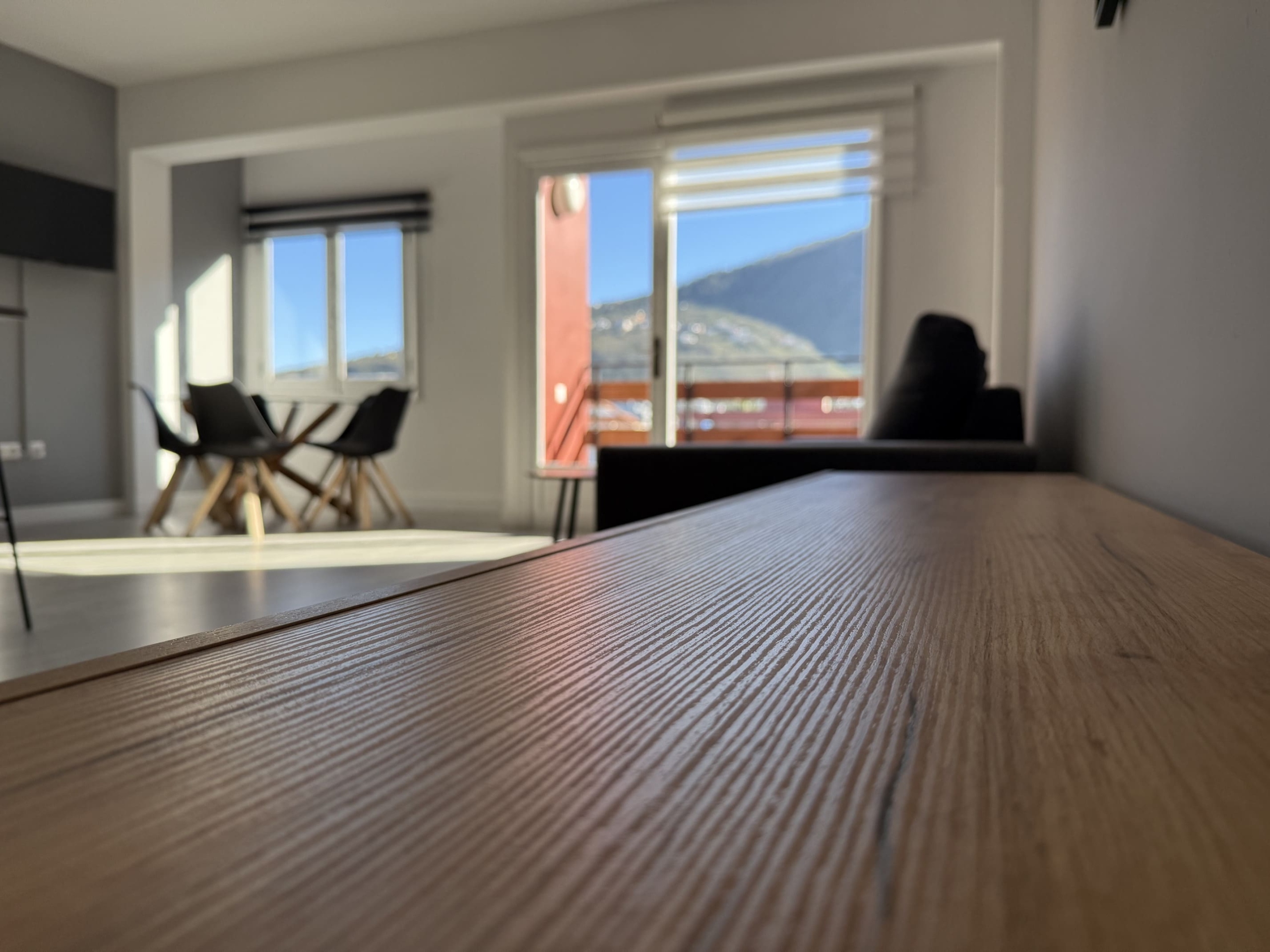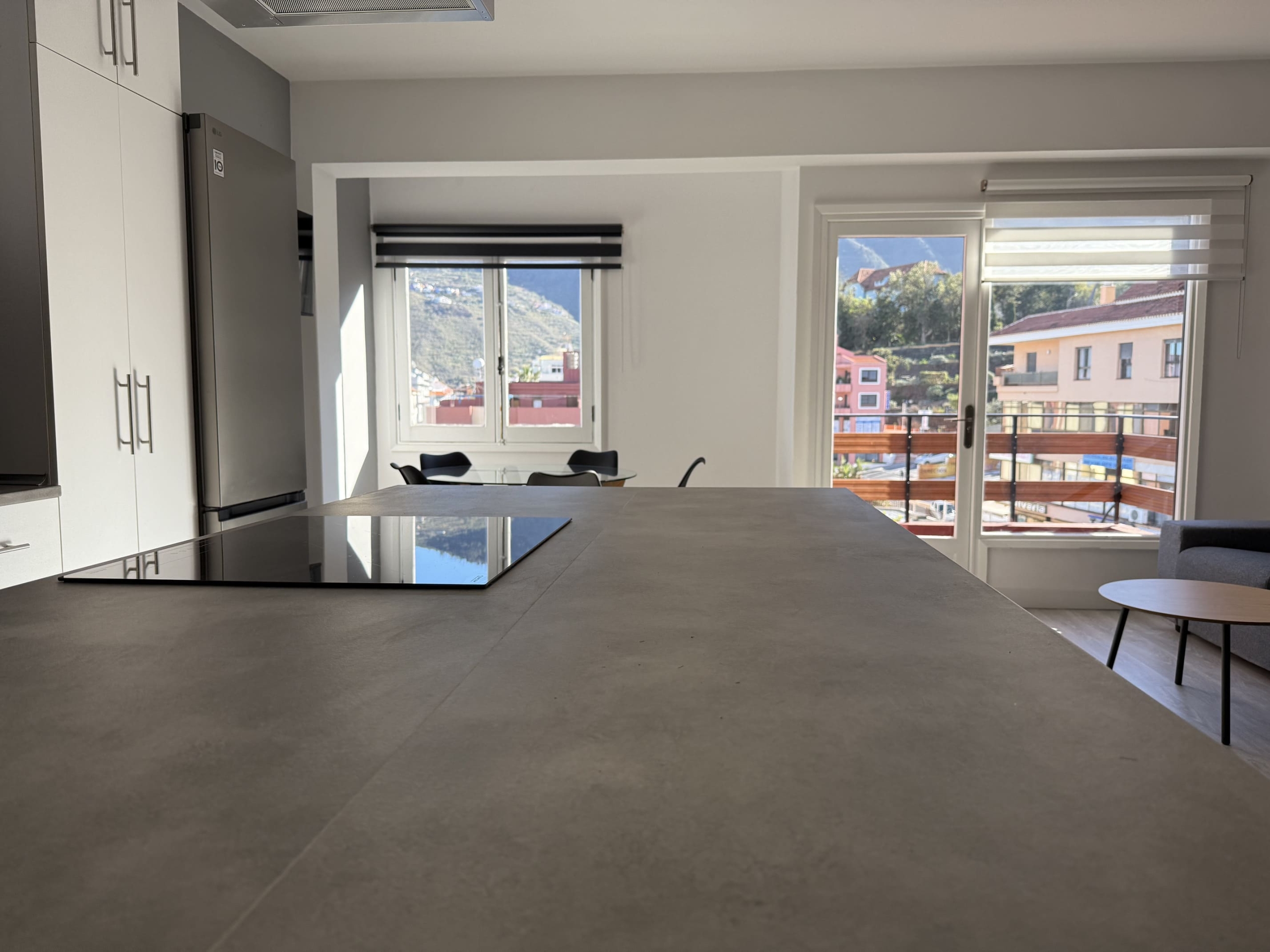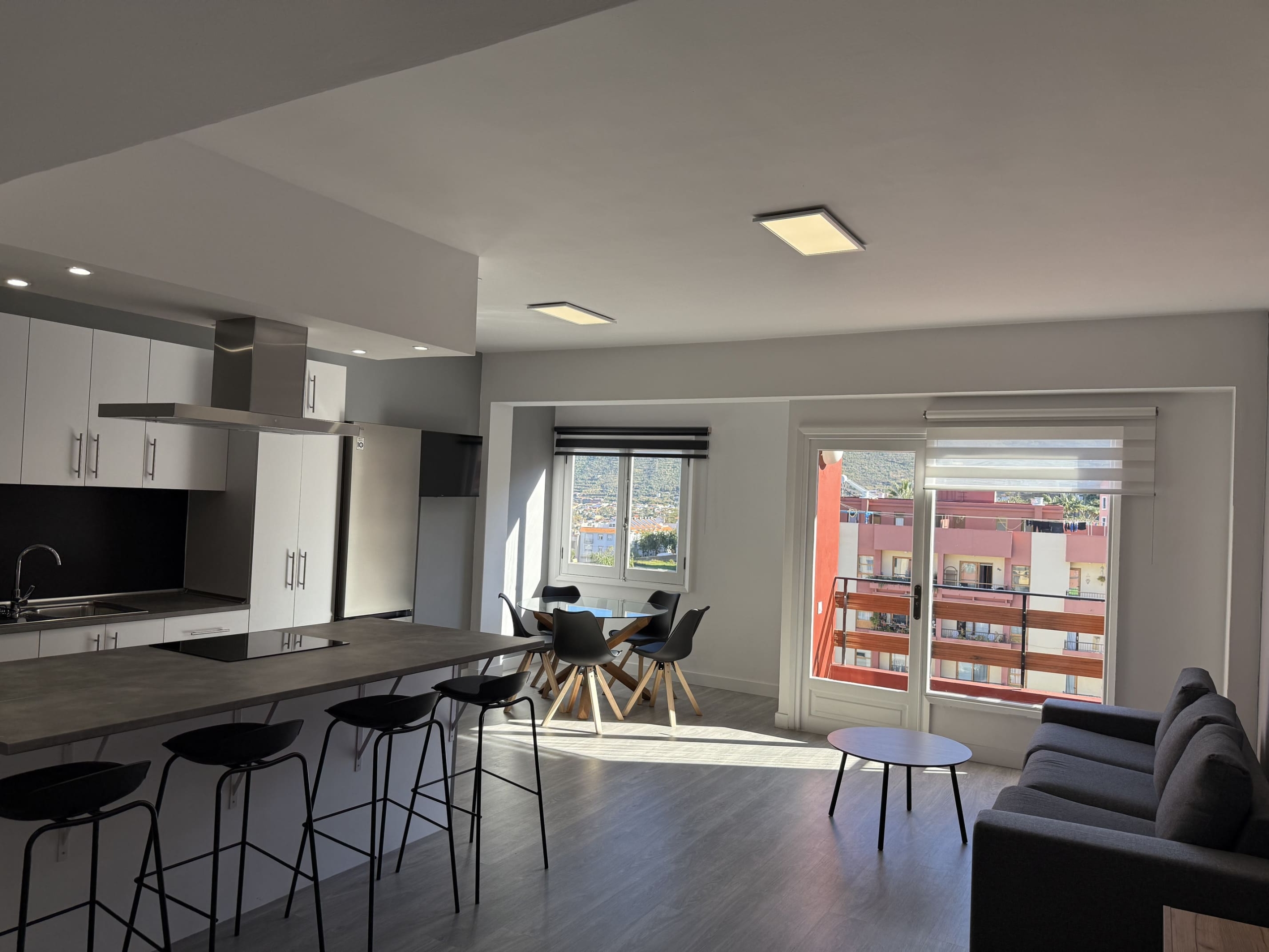 La vivienda dispone de una amplia cocina americana integrada en un espacioso salón-comedor. Además, cuenta con una terraza con vistas panorámicas de 180° al mar y al Teide, ofreciendo un entorno único que combina naturaleza y paisaje urbano.