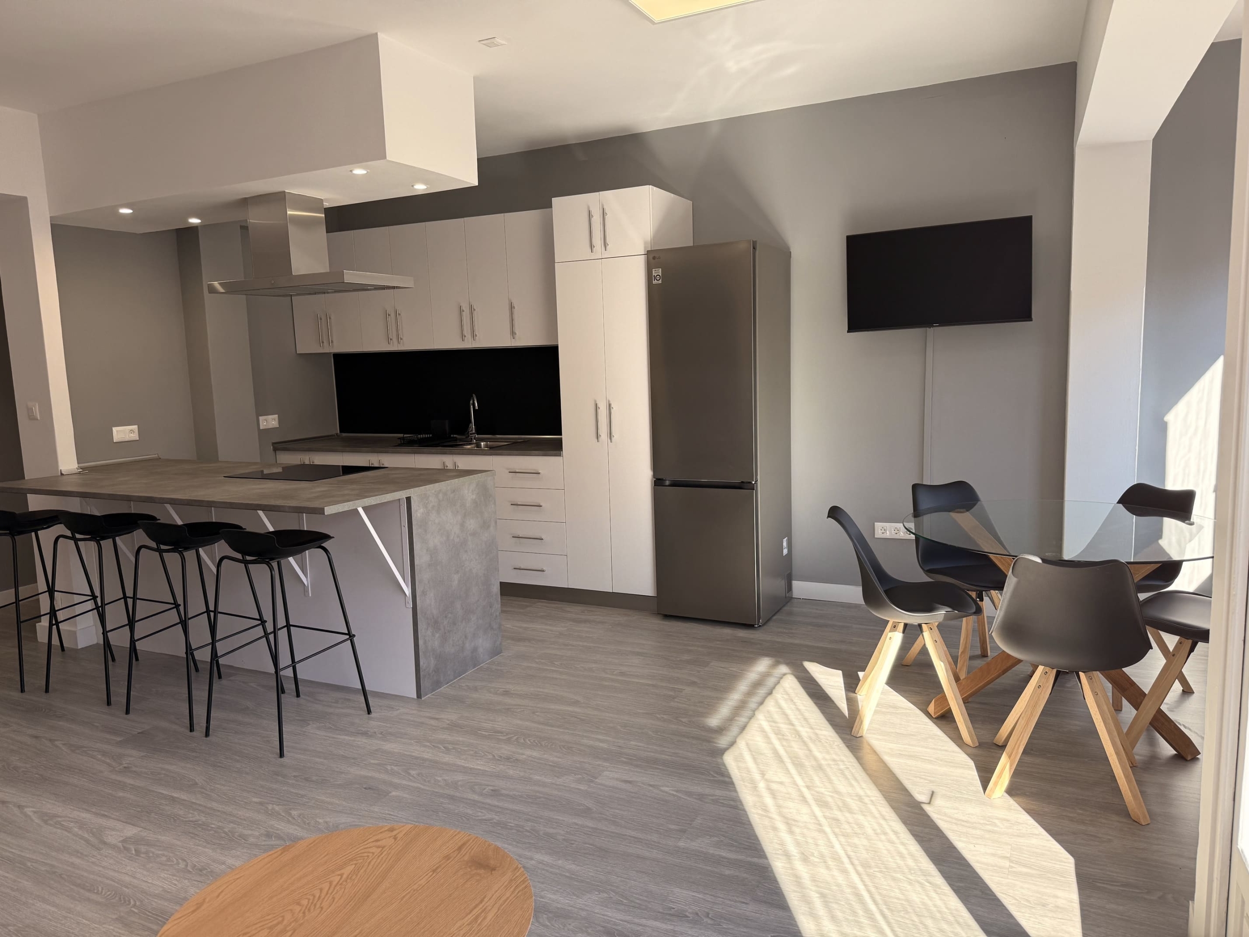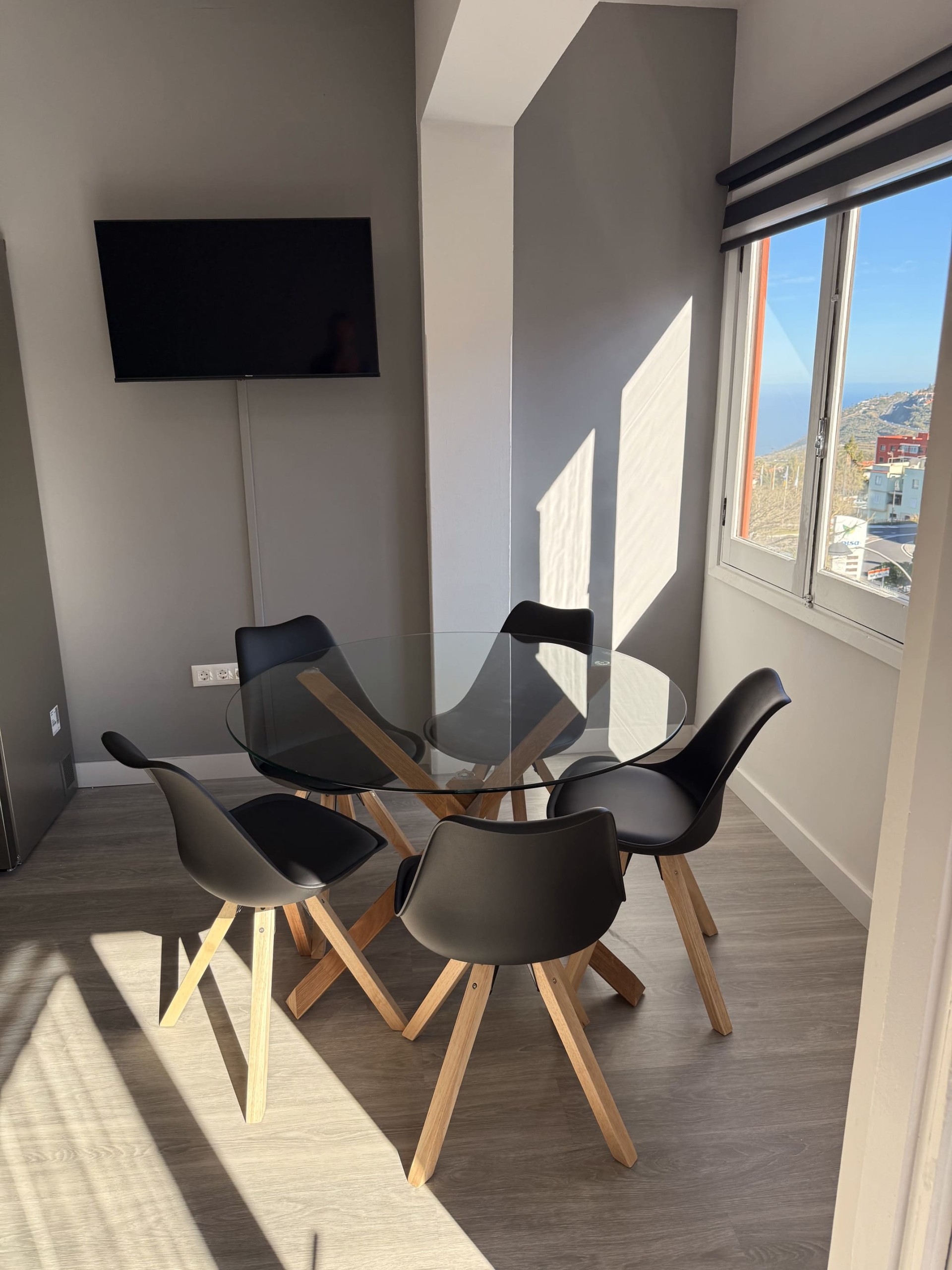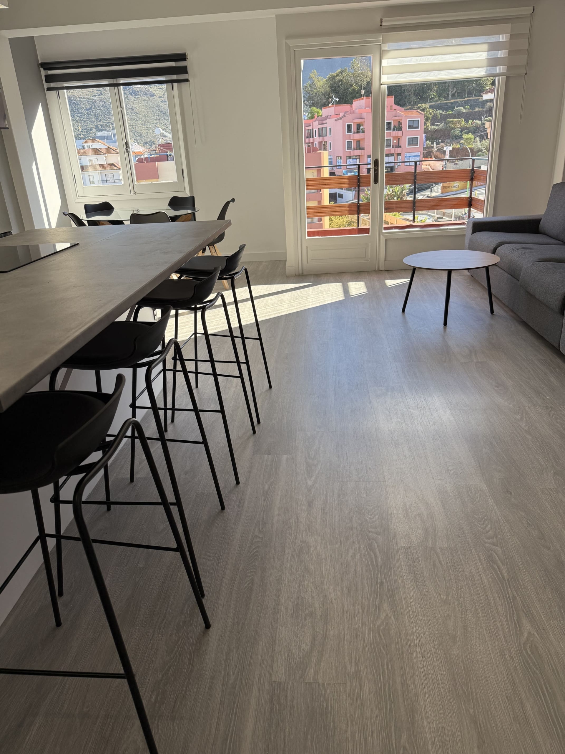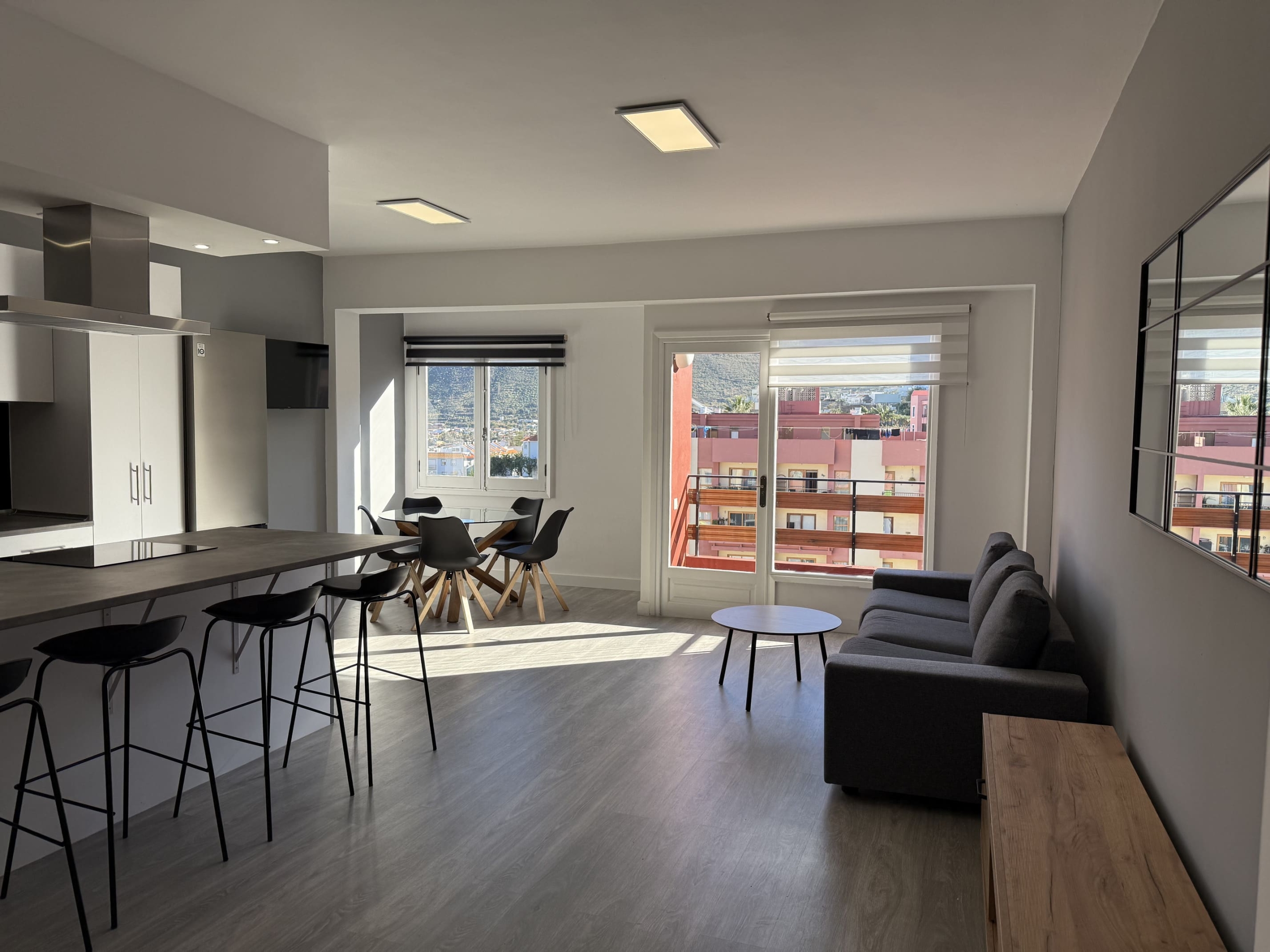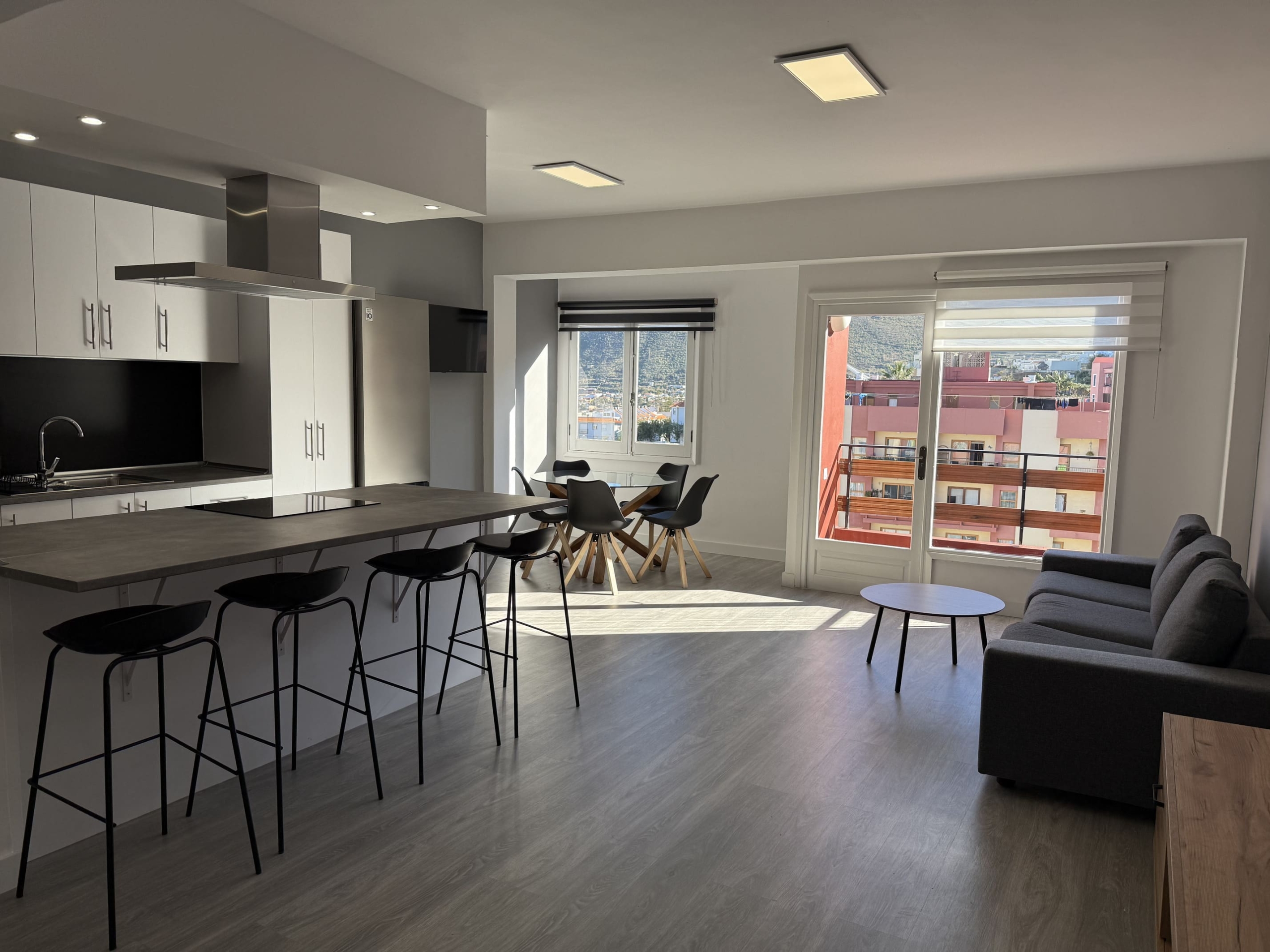 La vivienda dispone de una amplia cocina americana integrada en un espacioso salón-comedor. Además, cuenta con una terraza con vistas panorámicas de 180° al mar y al Teide, ofreciendo un entorno único que combina naturaleza y paisaje urbano.