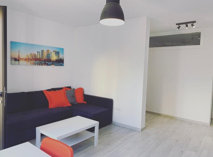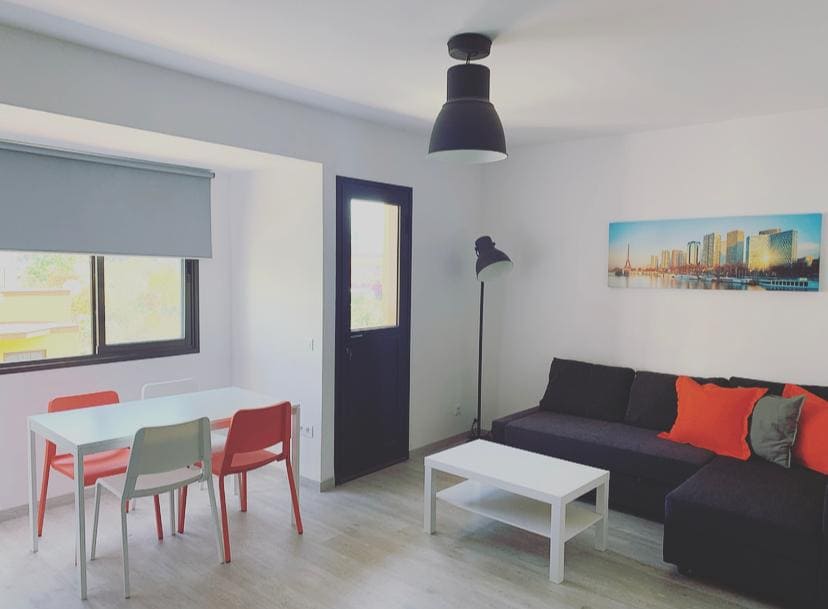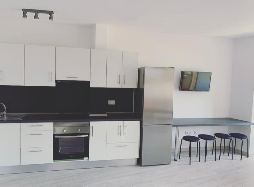 Dispone de amplias zonas comunes con una gran cocina estilo americano y 2 baños perfectamente acondicionados para la comodidad de todos. Desde la terraza podrás disfrutar de vistas al mar y al imponente Teide, el pico más alto de España. El edificio incluye también un espacio privado de colada en la azotea.