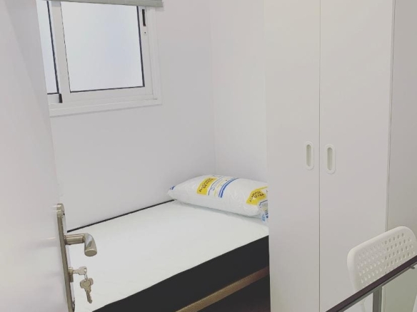 Este piso cuenta con 5 habitaciones con excelente iluminación natural y ventilación, todas equipadas con armario, escritorio, mesita de noche, silla y cama doble, además de conexión LAN en cada habitación y WiFi de alta velocidad en todo el piso.